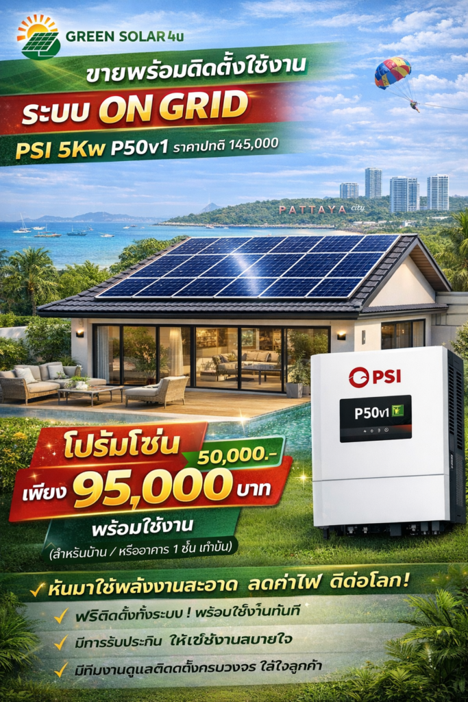 ในยุคที่ค่าไฟฟ้ามีแนวโน้มปรับตัวสูงขึ้นอย่างต่อเนื่อง ระบบโซลาร์เซลล์จึงกลายเป็นทางเลือกสำคัญสำหรับบ้านพักอาศัยและธุรกิจขนาดเล็ก โดยเฉพาะ ระบบโซลาร์เซลล์แบบ On Grid ขนาด 5kW ซึ่งถือเป็นขนาดที่ได้รับความนิยมมากที่สุดในประเทศไทย